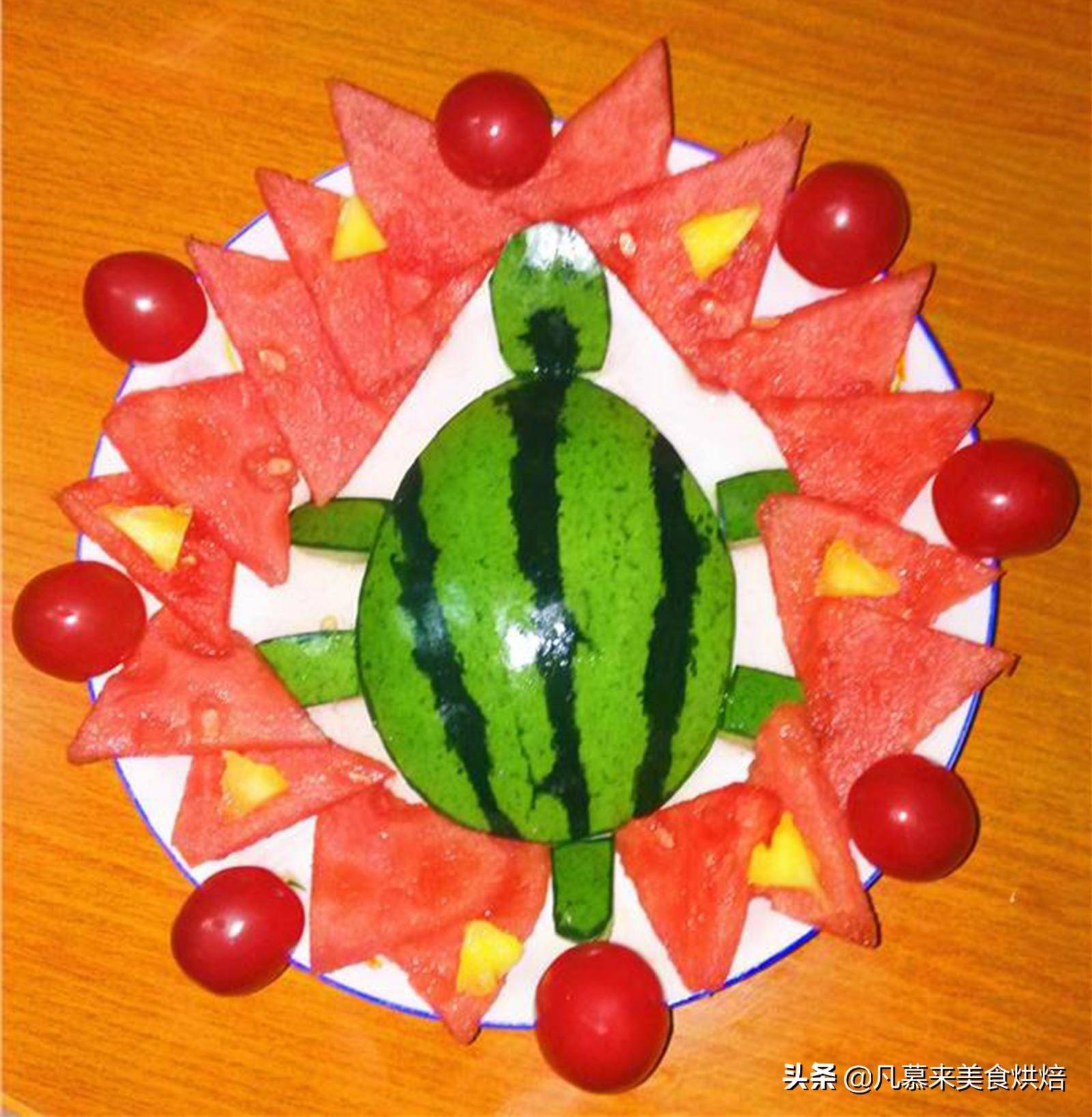 14、海龟:西瓜皮做的海龟,西瓜,小西红柿搭配,色泽搭配,小海龟真可爱。