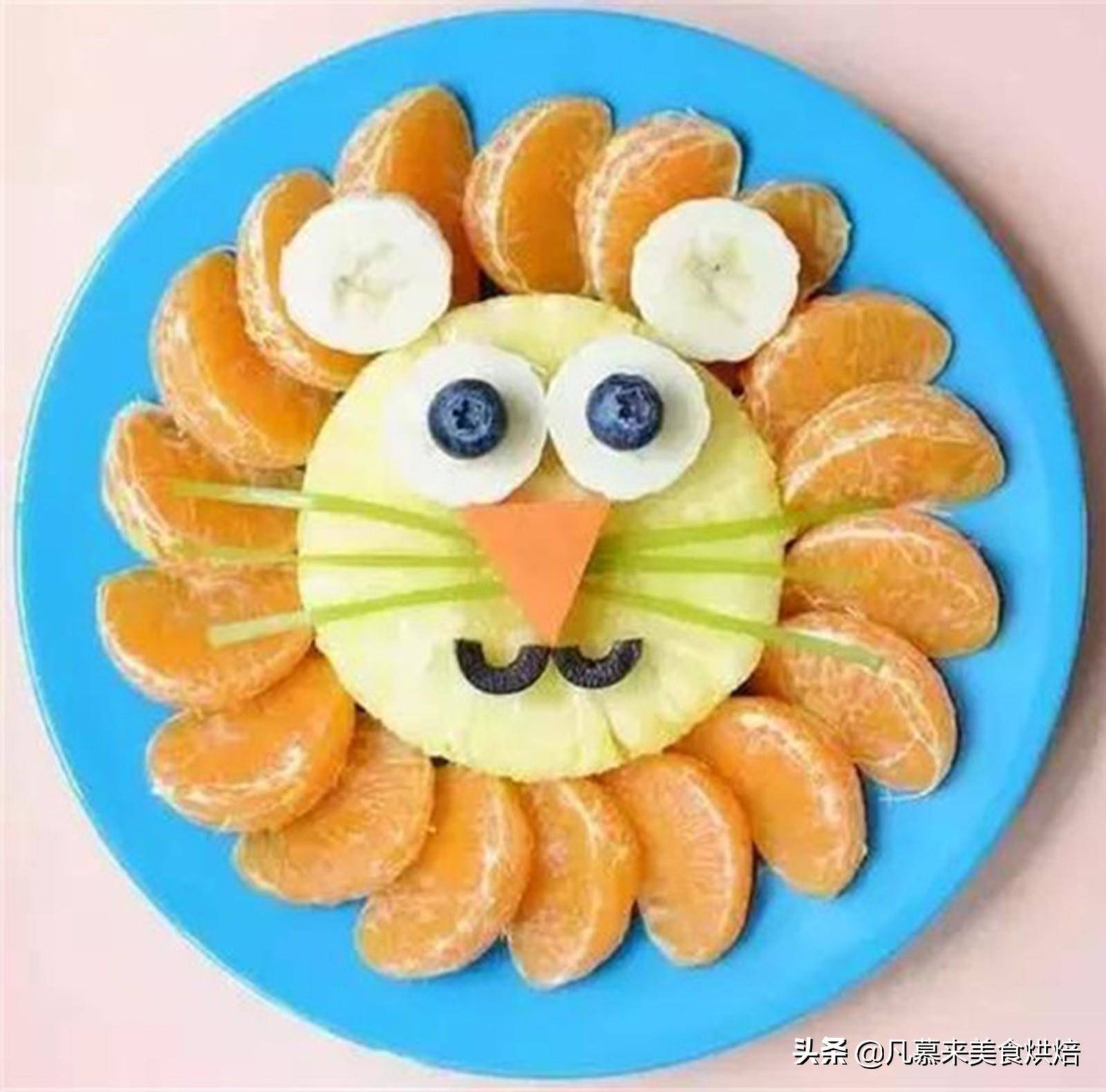 12:狮子王:由橘子瓣,香蕉片,蓝莓拼成。
