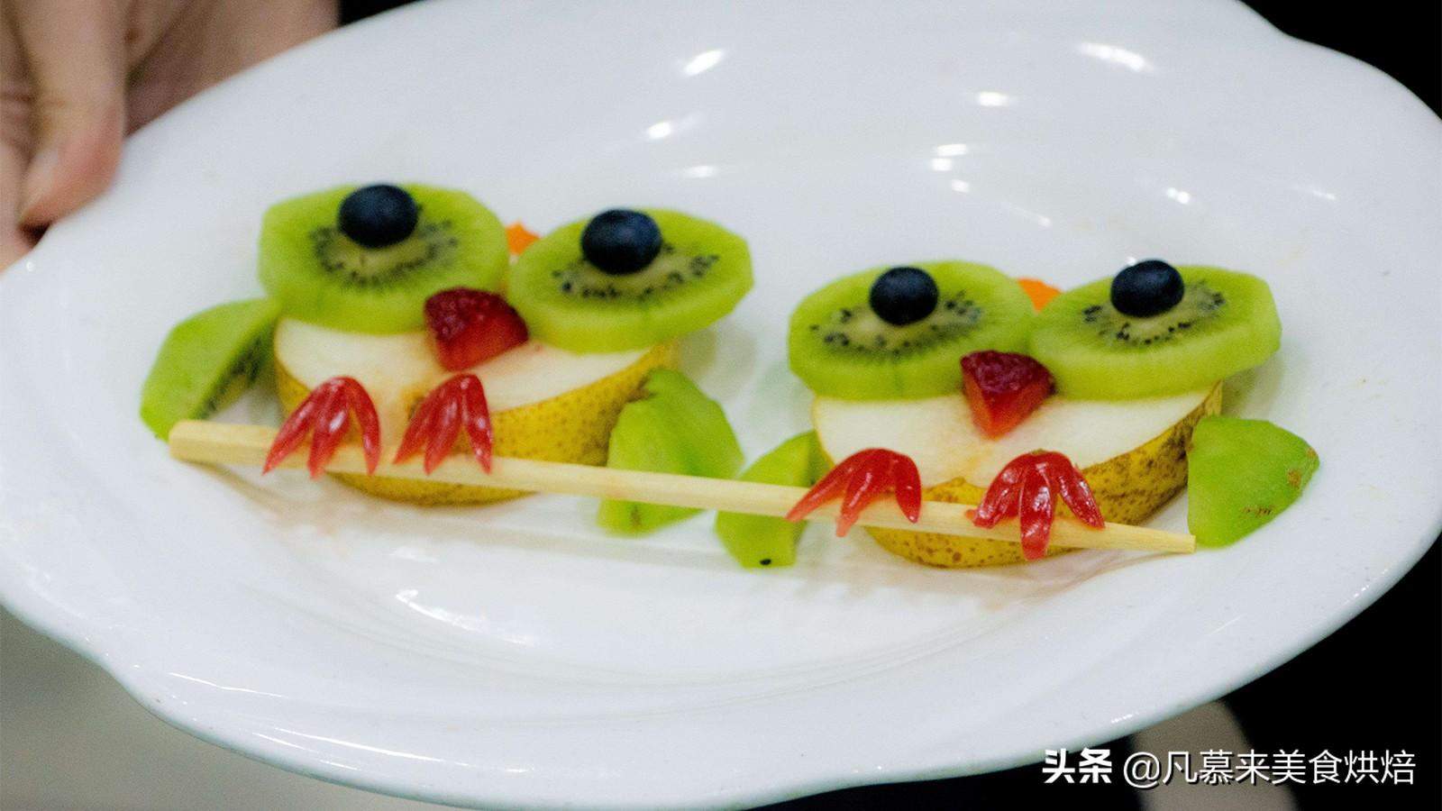 58、两只青蛙:猕猴桃、梨做的两只青蛙。