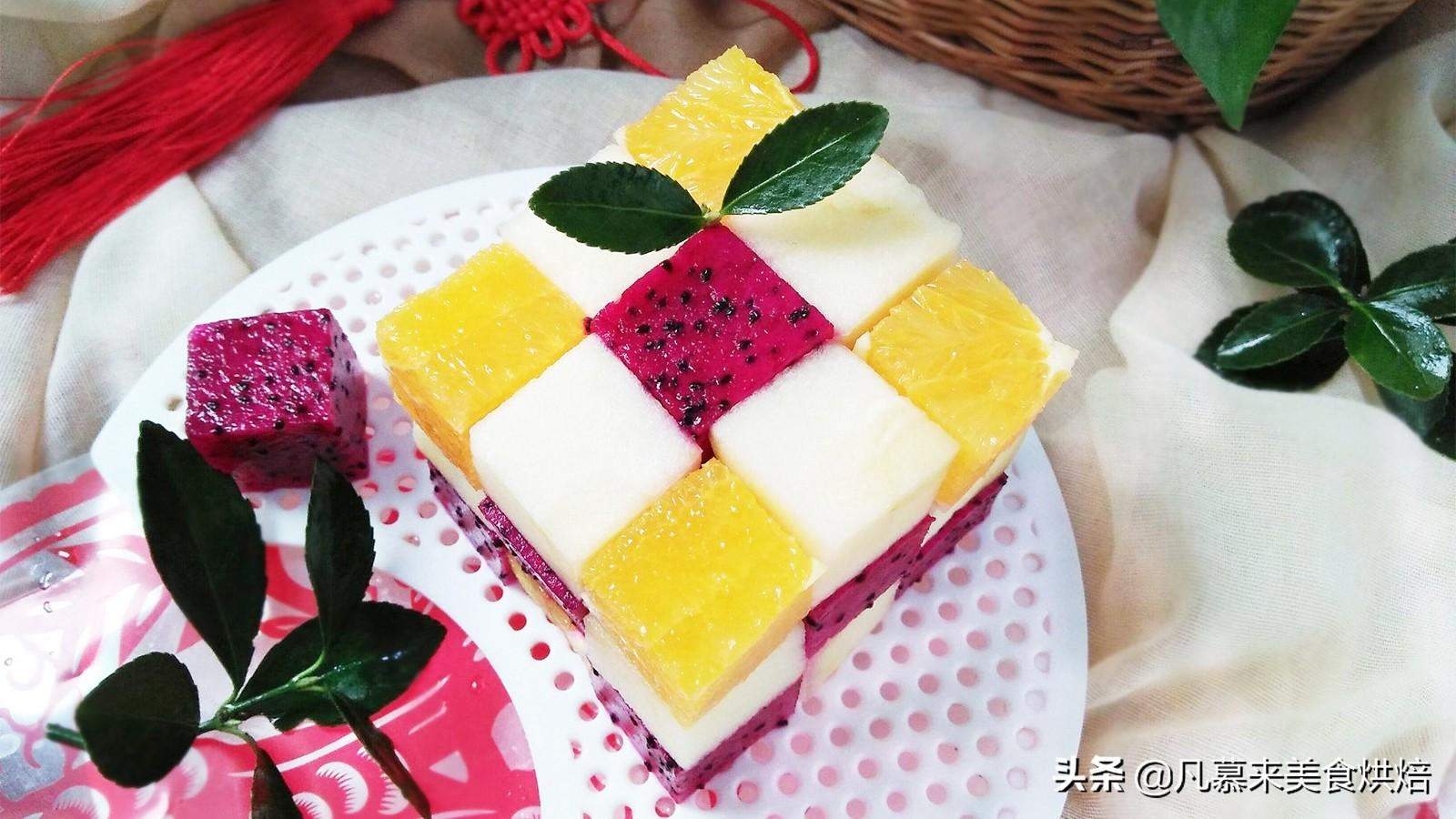 56、水果魔方:芒果、火龙果、苹果、拼成的魔方。