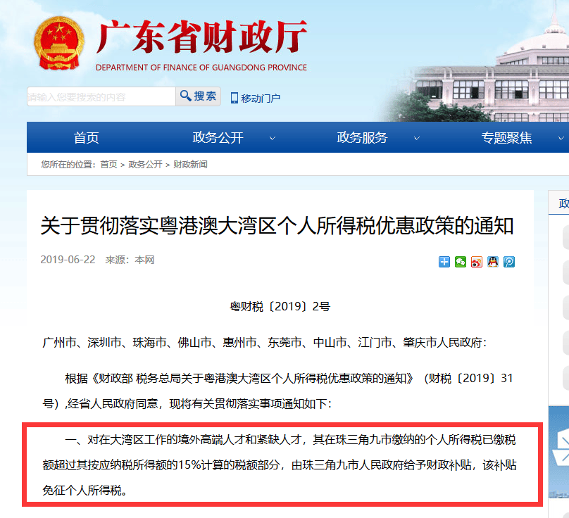 6月22日,广东省财政厅、国家税务总局广东省税务局公布了《关于贯彻落实粤港澳大湾区个人所得税优惠政策的通知》,由此,粤港澳大湾区个税优惠政策正式落地。