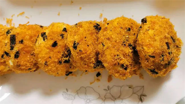 烤好的蛋糕拿出来以后倒扣晾,凉脱模之后分成自己喜欢的大小挤上沙拉酱或者卡士达酱。外皮涂上蜂蜜,把蛋糕块均匀的裹上肉松粉。肉松粉也可以选择海苔肉松粉。添加了海苔碎的肉松粉,吃起来口感很脆,并且带着海苔的鲜香味儿,同时也能吸收海苔的营养,其实肉松蛋糕做起来是特别简单方便的,平时没事的时候可以自己在家烤一点,吃起来比外面买的要香很多。