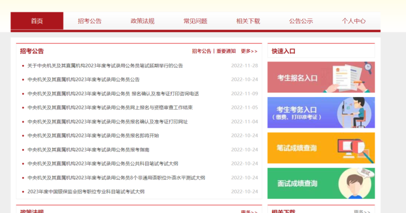 关于政治面貌的时间问题,比如要在11月中旬才能转预备党员,但10月下旬就已经报名了。这一点其实在国考的报考指南中有说,这个报考指南往往是大家忽略的一个资料,他挂在网站上,基本上与公告在同一天挂出,位置大概如下。