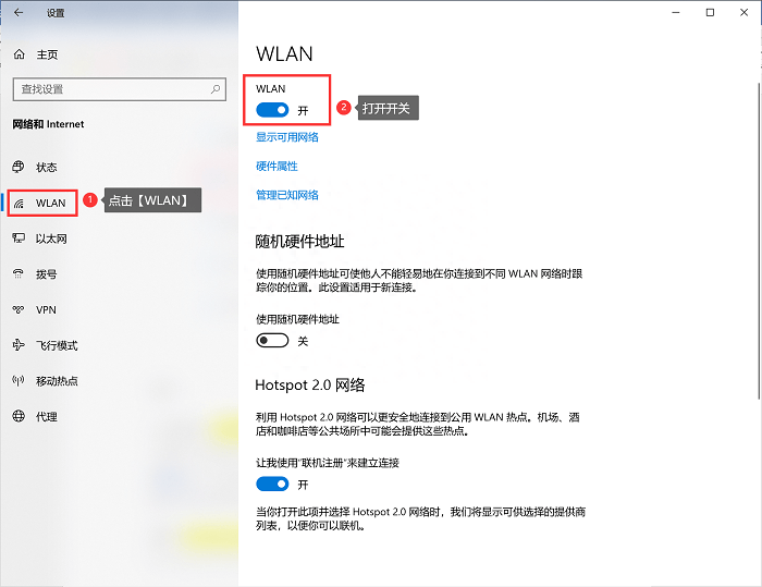 (注:如果台式电脑没有安装无线网卡的话,是无法打开WLAN开关的哦!)