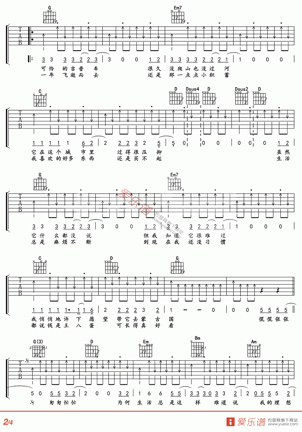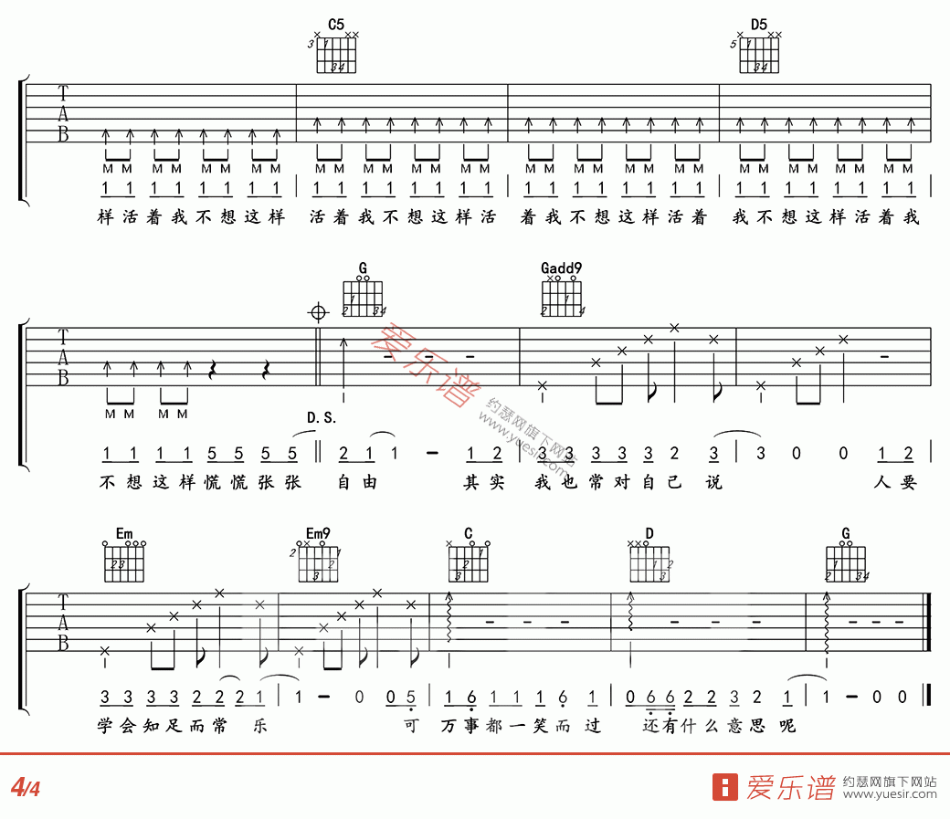 活着吉他谱c调简单版 活着吉他弹唱谱c调