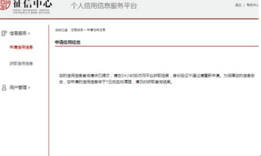 5、选择“个人信用报告”,输入身份验证码,点击“提交”,等待申请通过审核以后,24小时后会获得查询结果。