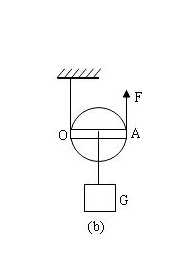 受力分析 ,F=G,利用杠杆原理 F2*L2=F1*L1,所F等于重物的重力,定滑轮可以改变力的方向,但是不省力。