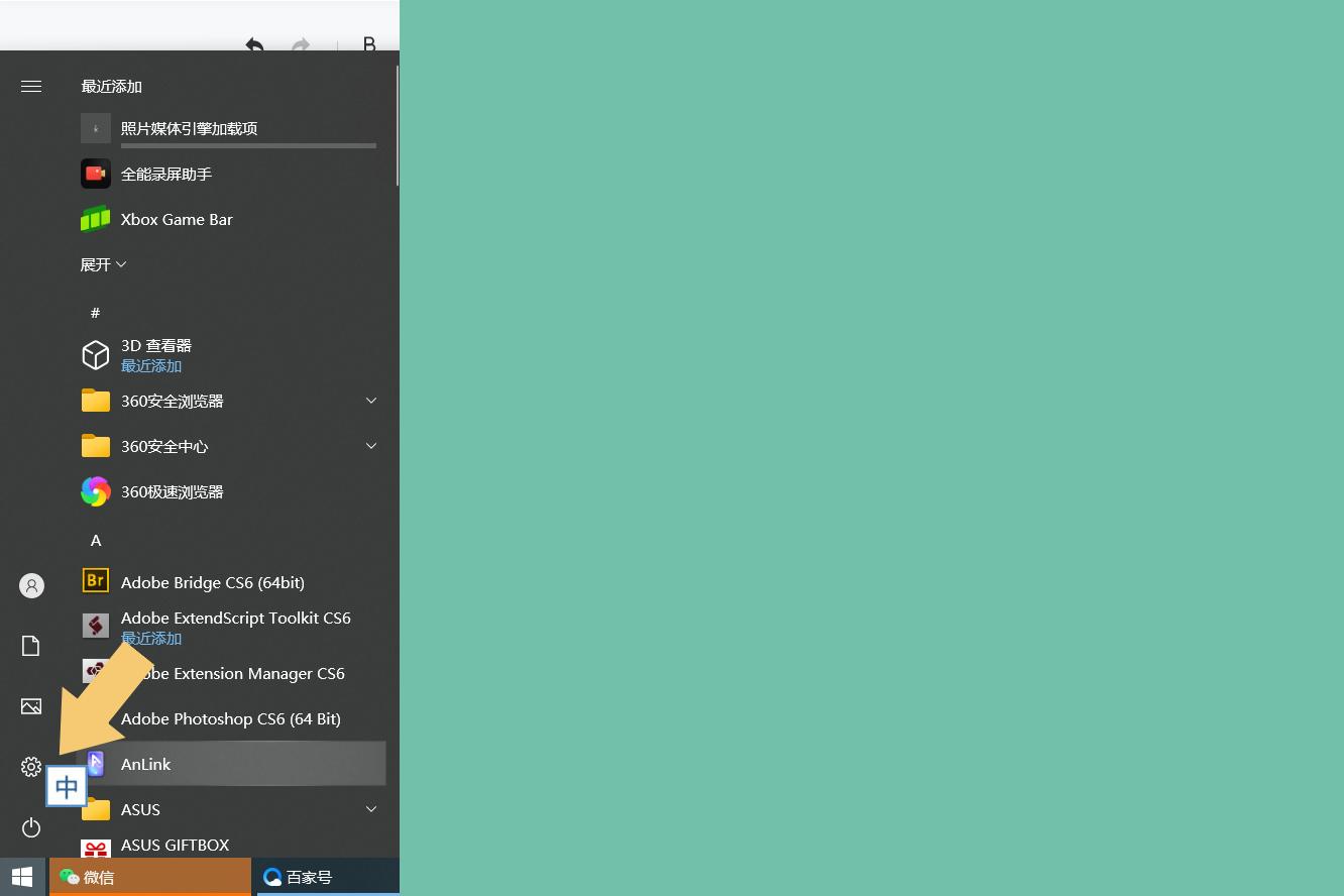 打开电脑,进入电脑桌面,在电脑桌面左下角找到开始菜单,点击开始菜单,在弹出的界面里选择“齿轮”图标,进入“设置”选项。如下图: