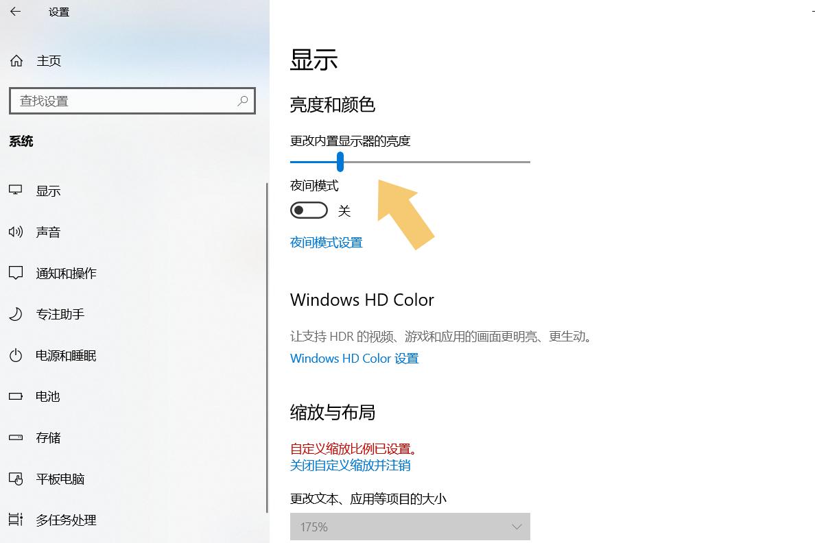 使用鼠标来回拖动或点击游标,即可调整屏幕的亮度啦。