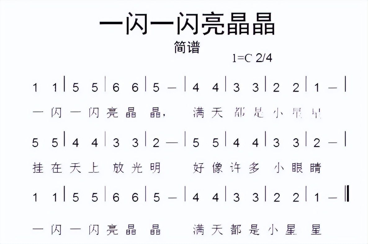 以下边谱子为例,我们看到数字是没有小黑点的,所以整首谱子我们都只弹中央C那组。谱子中的1代表do,2代表re,3代表mi以此类推,然后我们只需要在钢琴键上弹相应的键就可以了,是不是超简单?