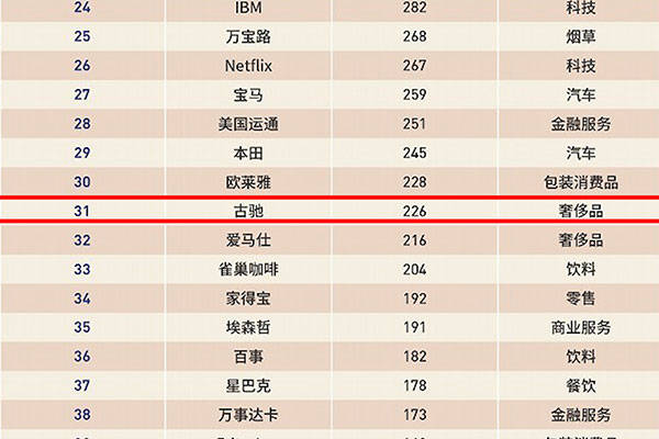 gucci品牌所涉及服饰极具浪漫主义特色,为市场带来了新的创作理念。2020年7月28日,古驰品牌进入福布斯2020年全球品牌价值100强的名单中,并位列第31位。
