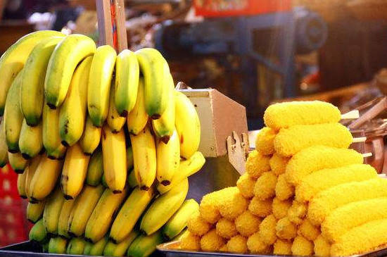 香蕉含有丰富的蛋白质、粗纤维、胡萝卜素以及各种维生素,适量食用可以促进肠胃的消化、缓解精神紧张疲劳、保护肠胃、预防失眠和高血压,同土豆一起食用会产生化学反应引起面部长斑,建议两者食用时间隔至少15分钟。