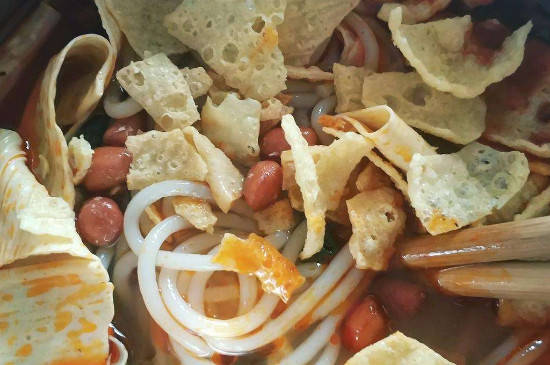 花生和腐竹等配料建议在螺蛳粉快要起锅的时候再放入,能确保其酥脆的口感。螺蛳粉闻起来臭臭的,跟其配料酸笋有关,酸笋的口感鲜脆,香而不腐,许多小吃都少不了酸笋的陪衬。