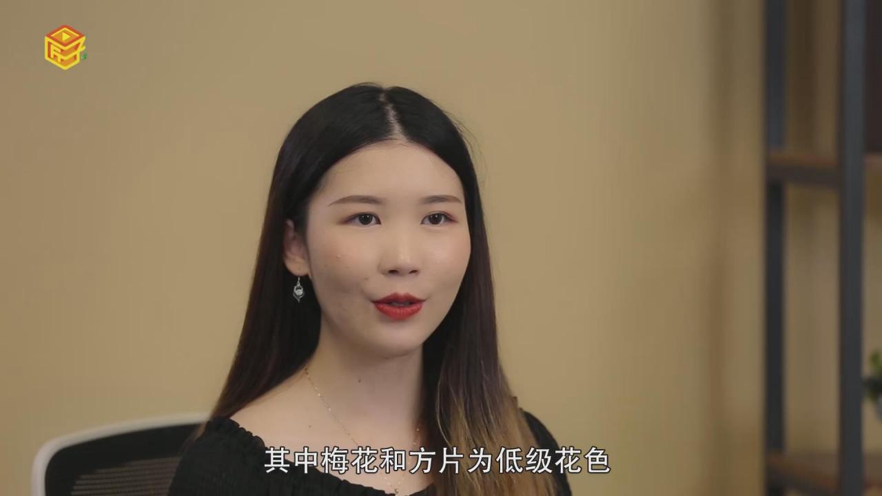 四种花色有高低之分,按照英文各自开头一个字母的顺序排列而成,即梅花为