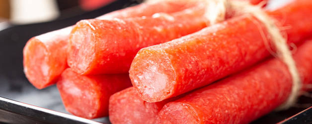 香肠是把猪或羊的小肠衣灌入调好味的肉料干制做成的,主要有川味儿香肠和广味儿香肠。