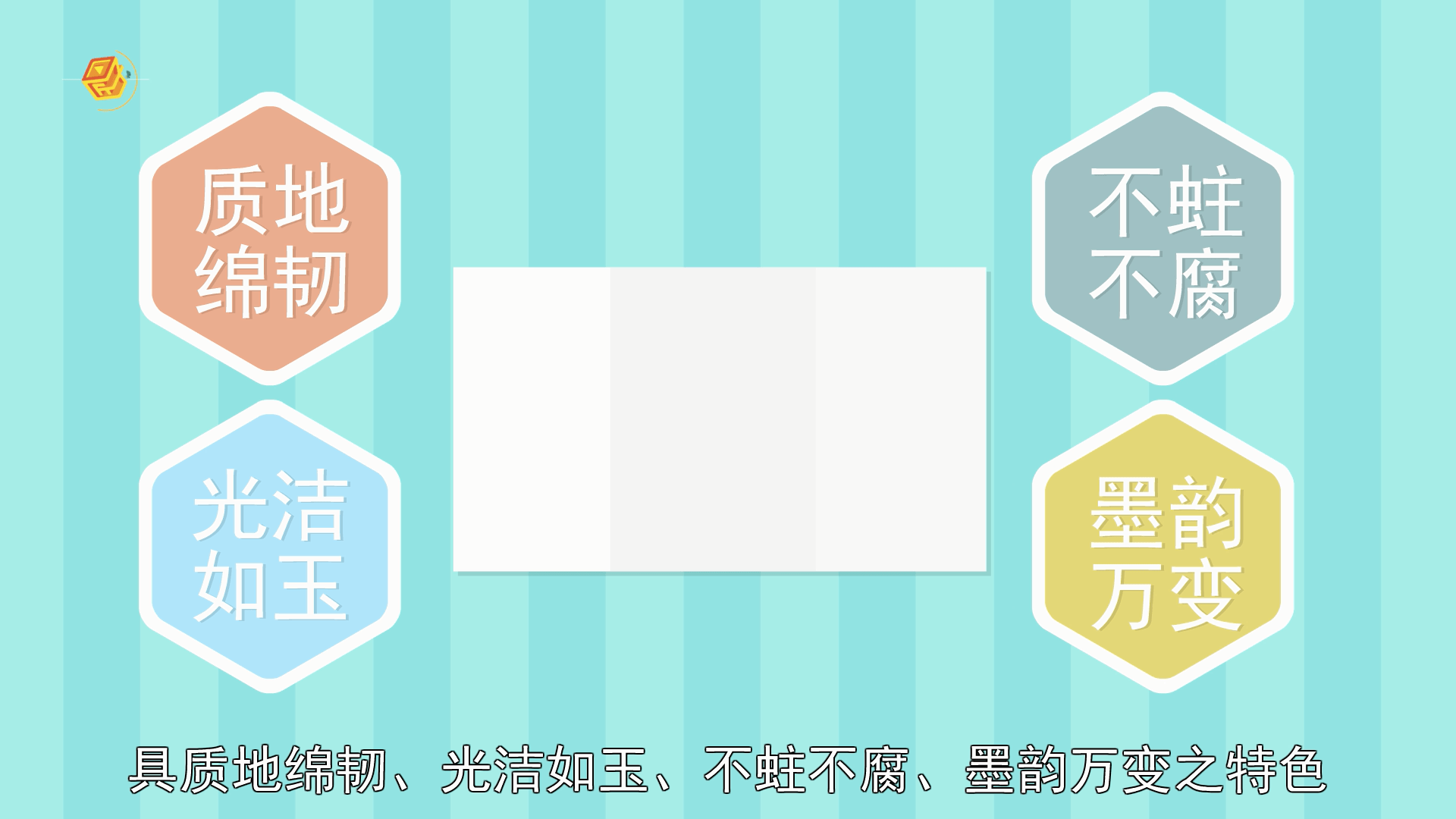 宣纸是中国独特的手工艺品,具质地绵韧、光洁如玉、不蛀不腐、墨韵万变之特色,享有“千年寿纸”的美誉。宣纸大致分生宣、熟宣、半生宣这三种。