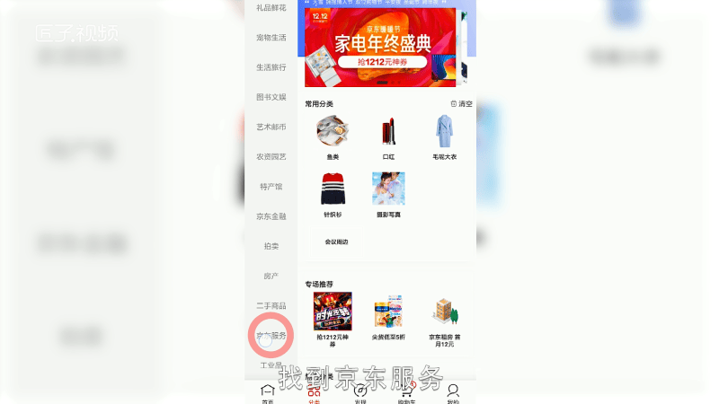 向下滑动推荐分类,找到京东服务