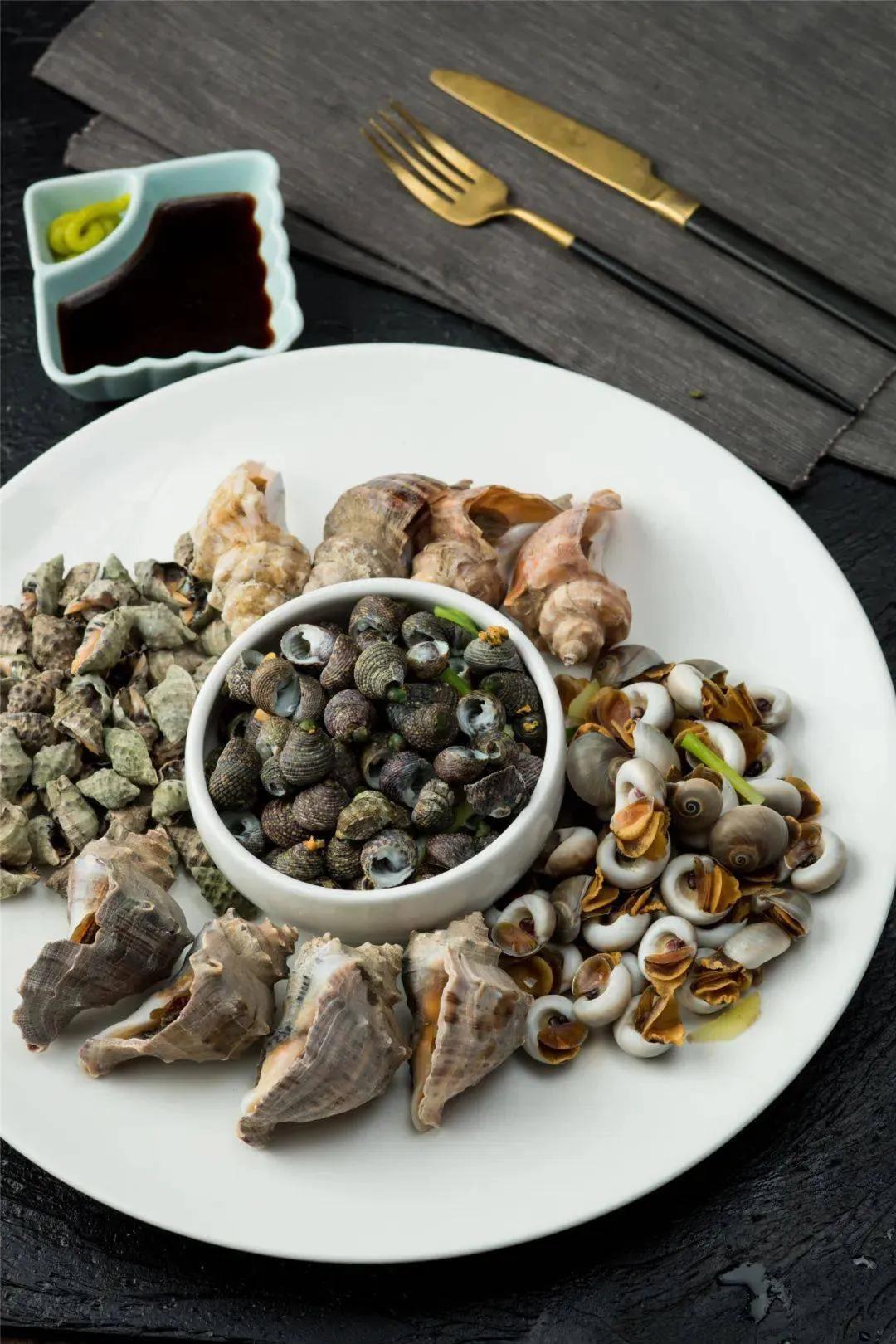 搐菠螺、学名叫滩栖螺。为什么叫“搐菠螺”?因为“搐”在青岛话里是“吸”一起,“吸一吸”也叫“搐一搐”。