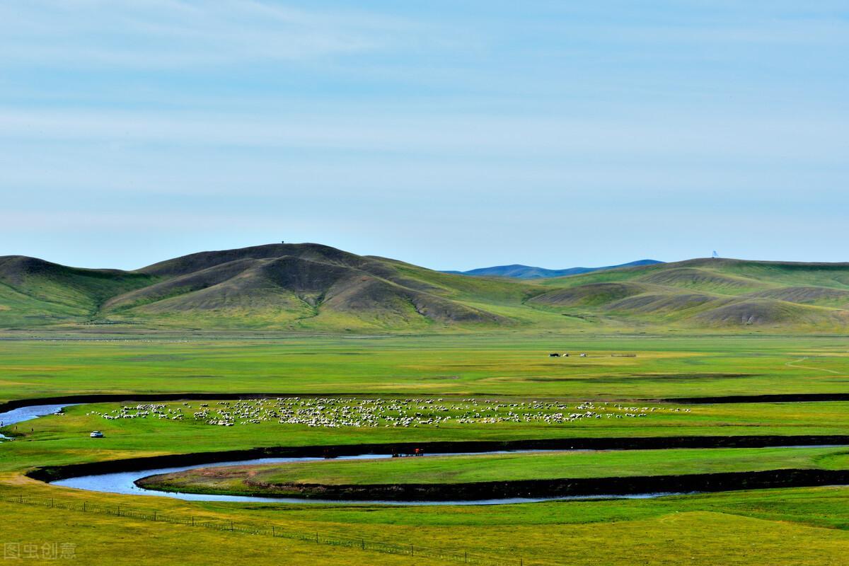 广袤无垠的草原上镶嵌着纵横交错的河流,成群的骏马在河边低头觅草,蒙古包前的牧马人拉着老旧的马头琴,遥望着草原尽头松涛激荡的原始林海…