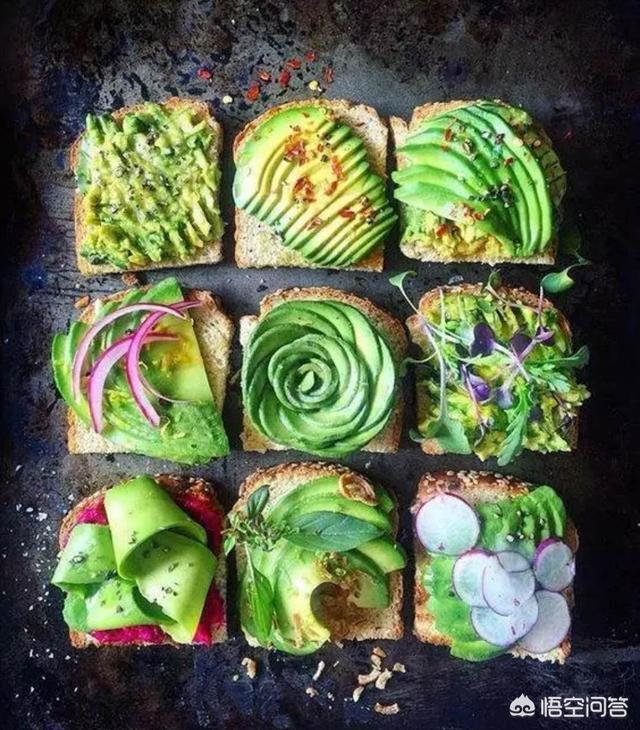 牛油果也是最近几年流行起来的,青翠的绿色、百变的造型,就这么随意地摆放在土司上,土司瞬间也显得高大上了。