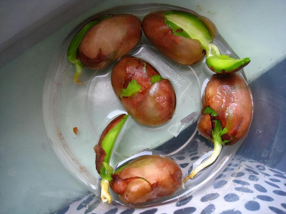 等它吸满水分之后,我们不需要急着将它栽入盆土当中,我们可以把它放在培养皿当中,放上一点点水分,让它自行发芽破壳。