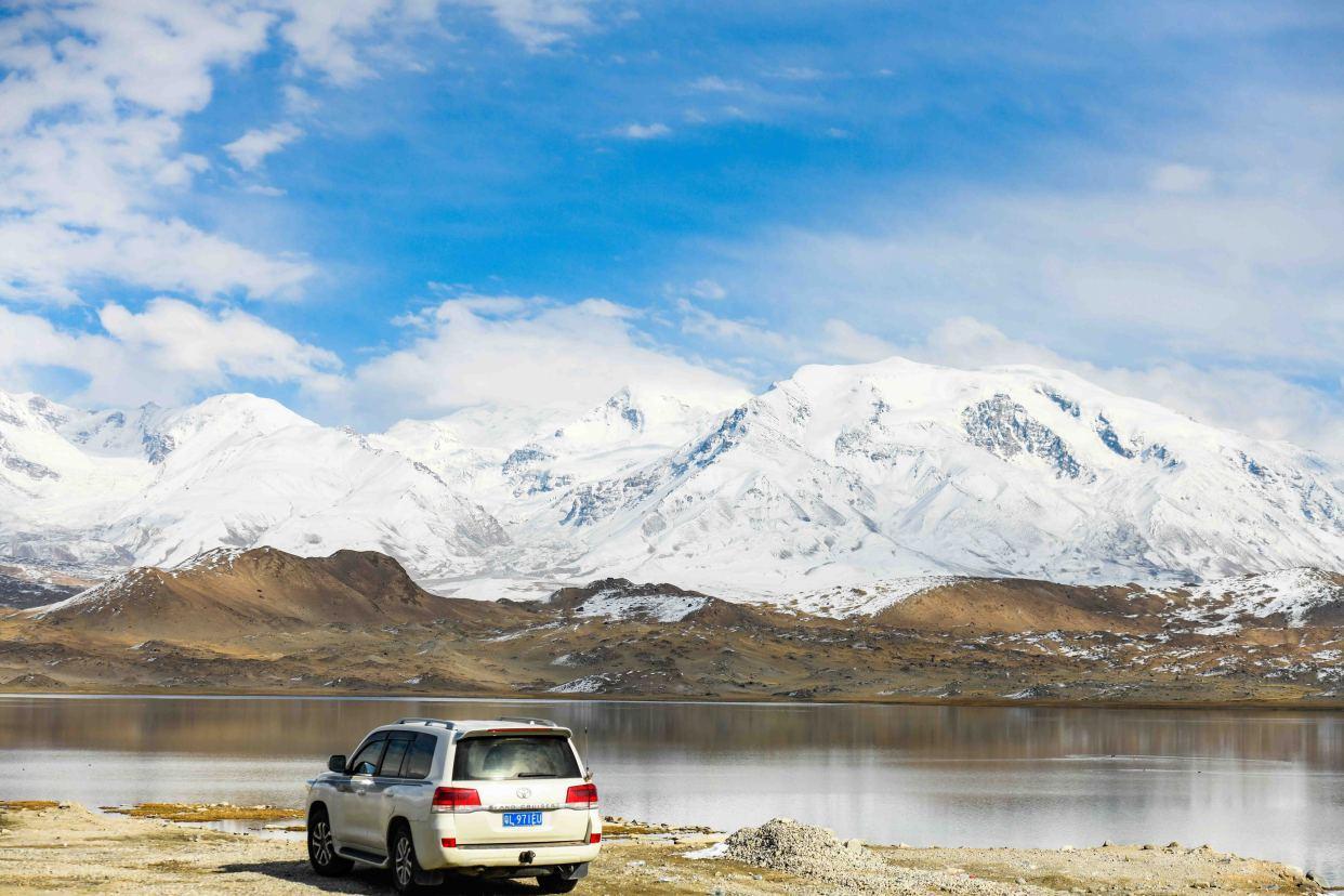 来慕士塔格峰,最好的选择莫过于自驾。驾车奔驰在宽阔平坦的公路上,车窗外的晴空蓝的澄澈,白云悠悠地在苍穹上飘荡着。