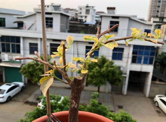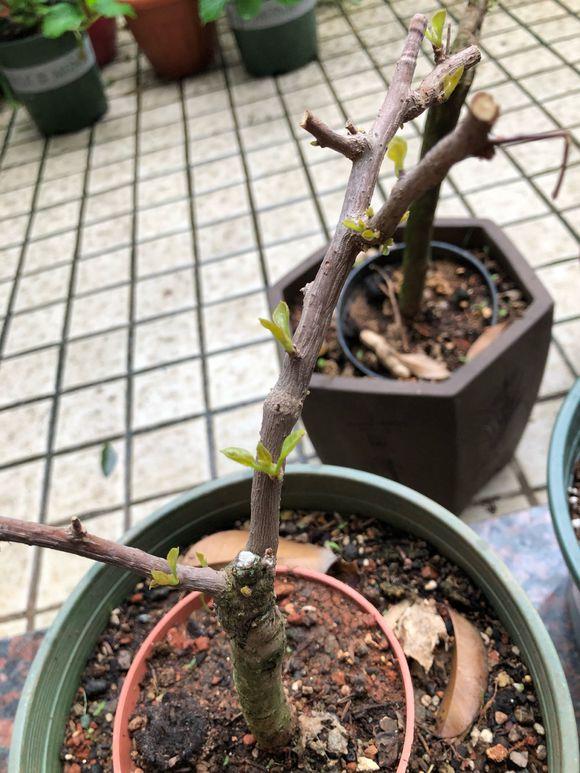 三角梅没出芽时要耐心等等,可能温度还没到,但是如果到了五月底了,还是光秃秃的杆子,那表示真的玩完了,要么是出室太早了,枝条被冷风吹伤了。