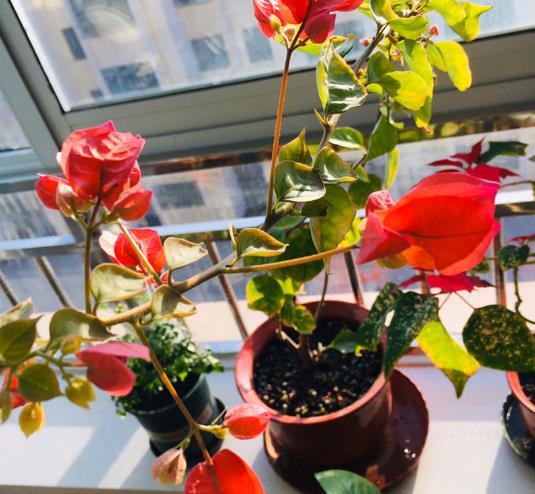 三角梅是个很神奇的植物,除了怕冷几乎没啥毛病,冬天把它放在向阳的房间,二十天左右浇一次水,晴天大中午的时候浇,除了个别怕冷的品种,大部分都能安全过冬。