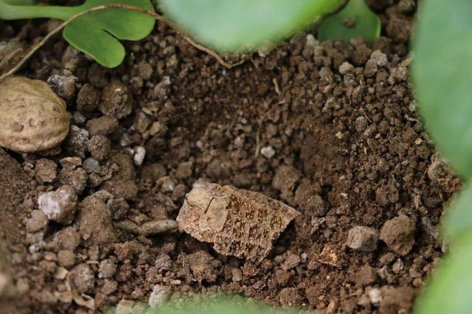 花生壳的用处非常多,如果我们不将花生壳碾碎,还可以把它们均匀的铺在花盆底部。