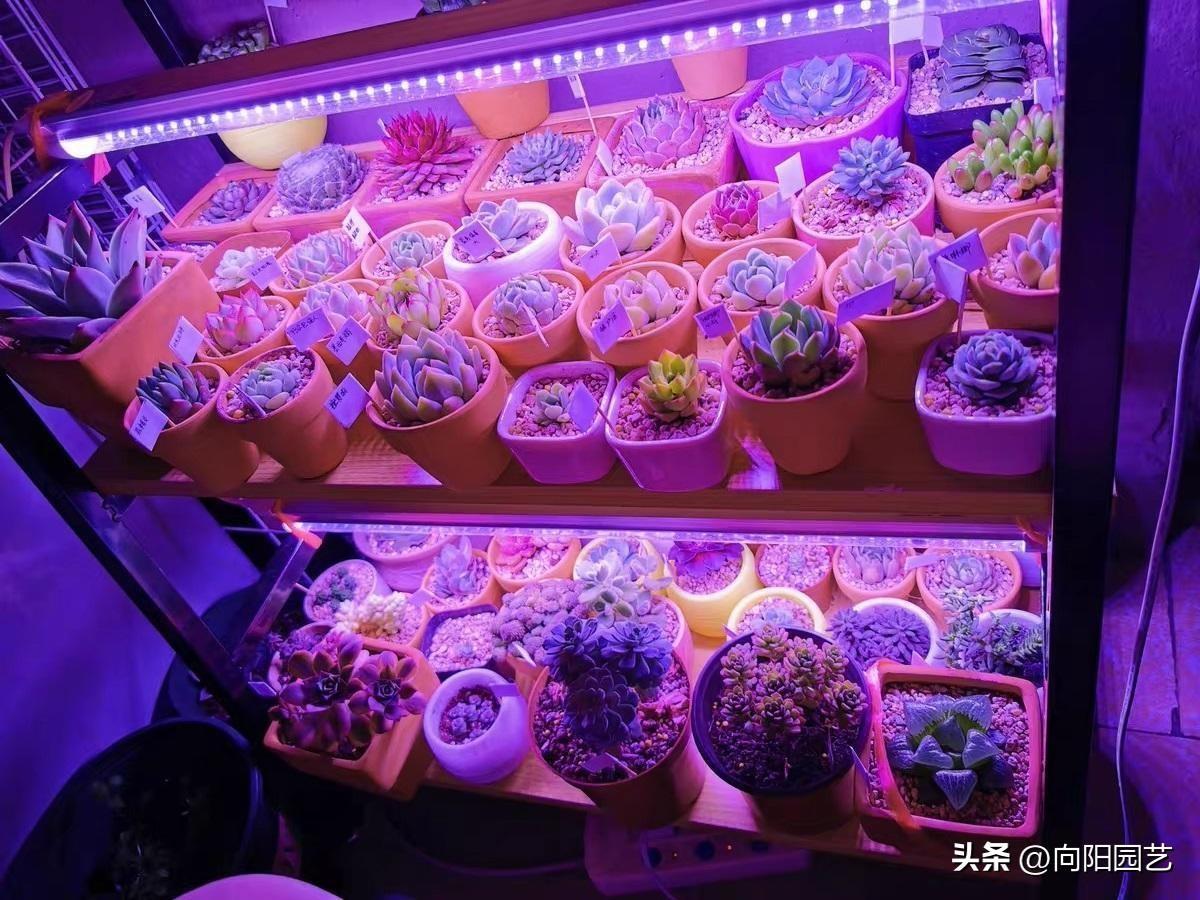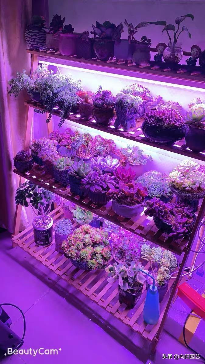 补光灯能弥补太阳光照不足,到了夜间开放4~5个小时,能缓解多肉徒长的问题,同时还能让多肉更好的出状态,补光灯的好处还是很大的,但是照射的时间不要太长。
