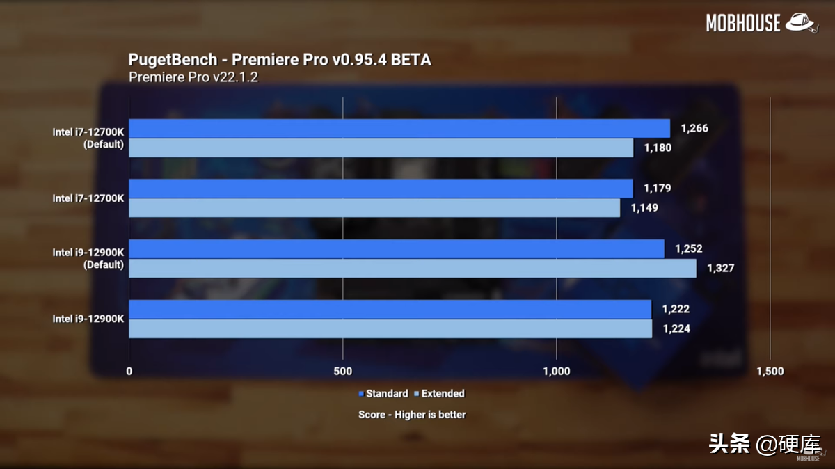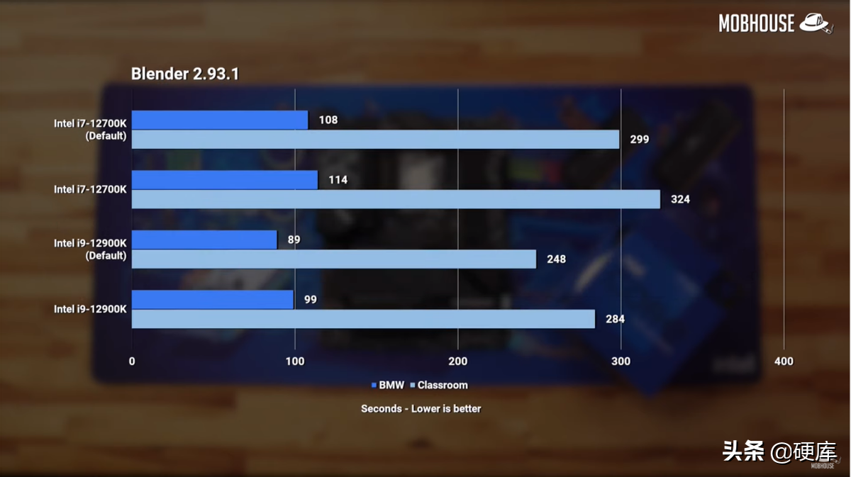 这里我们还是选择两款软件进行生产力对比,PR的PugetBench和Blender渲染测试。在Pugetbench中,可以看到在bios未解锁PL的默认设置下,i9 12900k在Extended拓展模式下分数是1327比i7 12700k的1180分高了12.4%, 而标准模式下差距不大。在Blender渲染测试中,默认设置下,教室场景i9 12900k比i7 12700k渲染速度快了17%,BM W场景差距也差不多。这样的差距水平只能说并不大,在之前的一篇12600k对比12700f(还不是i7 12700k)的生产力对比中,某些渲染测试12700f就比12600快了20%多。虽然i9 12900k和i7 12700k的差价比12700f和12600k的差价要大的多,但性能差距却小于价格差距不少。