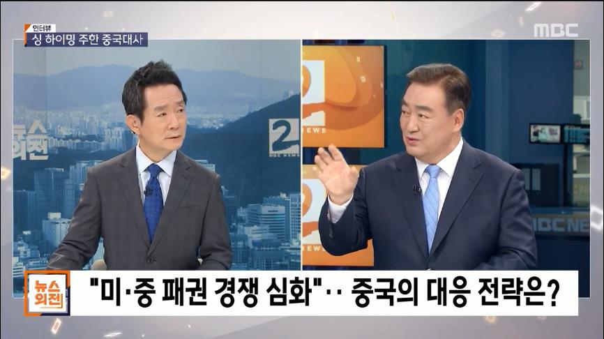 5月26日,邢海明大使参加韩国三大电视台之一的韩国文化广播公司(MBC)《新闻外传》现场直播节目,深入解读中韩关系发展前景,剖析国际地区形势,介绍中国共产党百年历史成就,并就韩方关心的中美关系、韩美联合声明涉华问题等回答主持人提问。采访实录如下: