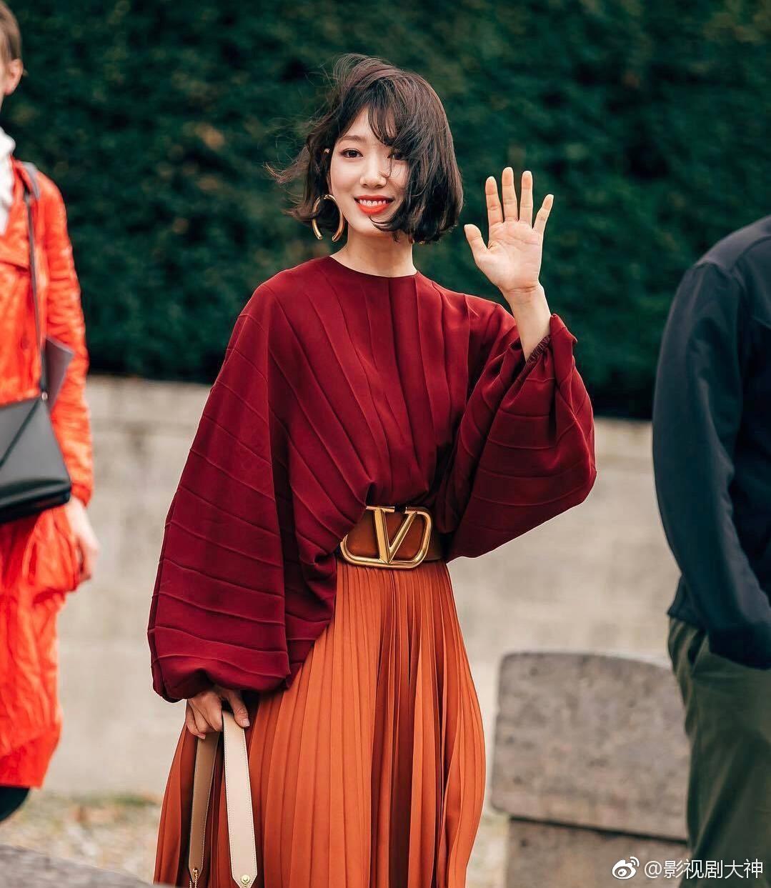 朴信惠参加巴黎时装周,短发造型十分耐看,女人味十足