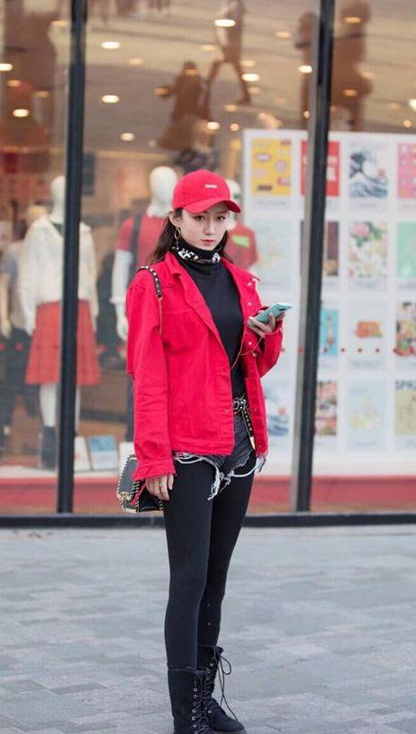 美女身穿红色外套,搭配牛仔超短裤,简约时尚的穿搭,优雅知性,尽显曼妙身姿!【上海街拍:美女身材丰腴,身穿粉色上衣,内衣微露,女人味十足!】