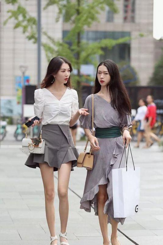 美女身穿白色上衣,搭配灰色短裙,尽显纤细大长腿,十分吸睛!【上海街拍:美女身材丰腴,身穿粉色上衣,内衣微露,女人味十足!】