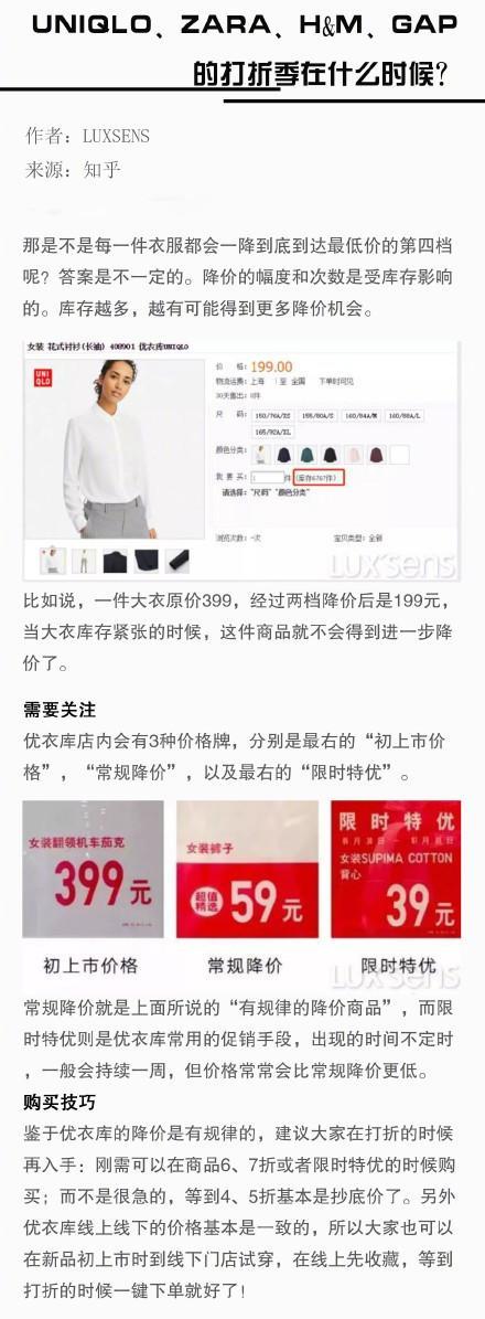 一般来说,优衣库、ZARA、H&M、GAP的衣服打折季在什么时候?什么时候买最划算? @微博时尚
