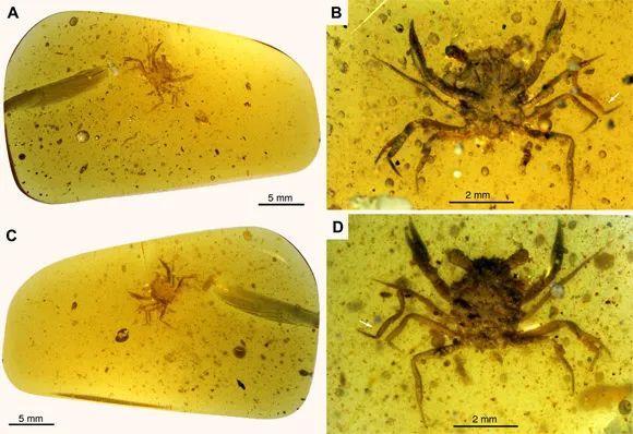 直到近期才发现来自东南亚的白垩纪琥珀化石,其封印的螃蟹是前所未见的物种,它被命名为“Cretapsara athanata”,意思是云与水的不朽之灵。哈佛大学的生物学系博士哈维尔·卢克(Javier Luque)表示:“这个标本非常壮观,独一无二。这个化石非常完整,连一根毛发都没有缺失。”这只5毫米大的螃蟹,是目前发现长得和现代螃蟹相似的化石中最古老的。卢克博士表示:“越是深入研究化石,我们就越能发现这种动物在许多方面都非常特别。”