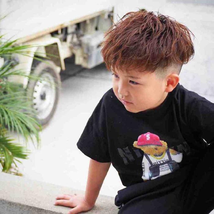 小男孩现在也喜欢追求潮流时尚,有的家长就会尝试给小男孩的头发上一点发色,挑染造型就很不错,只是在发梢的部位做一些金色的染发。