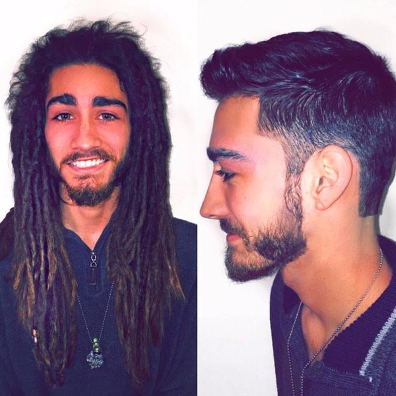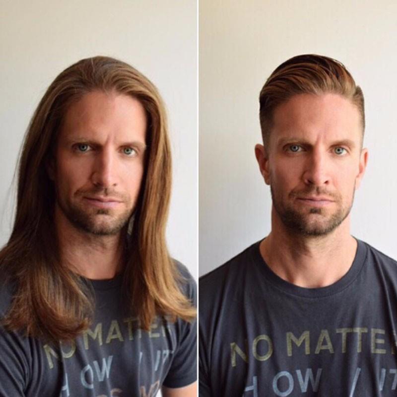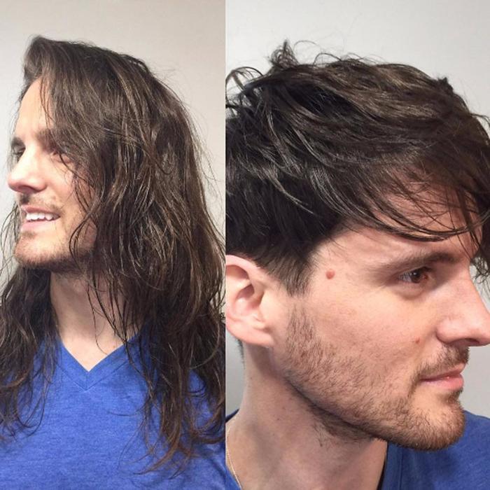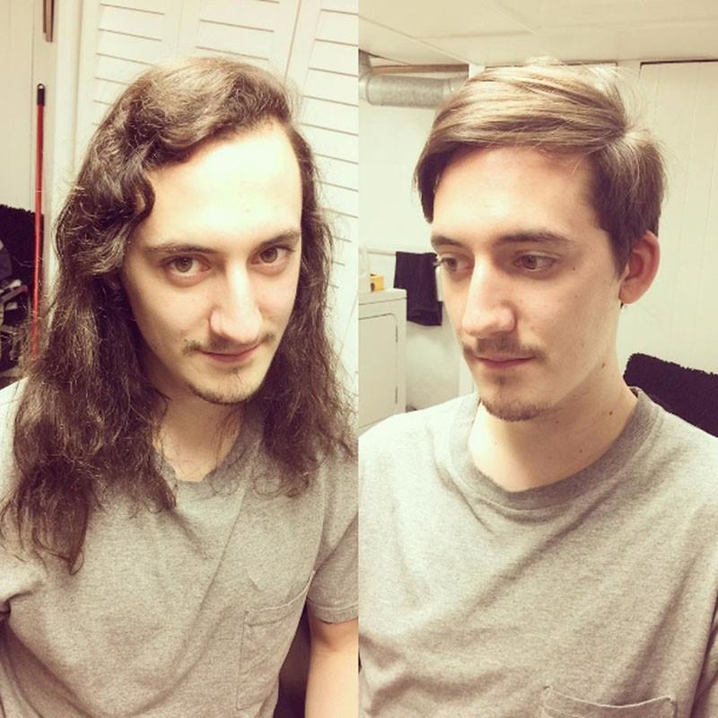毛茸茸长发到帅帅哒的短发。