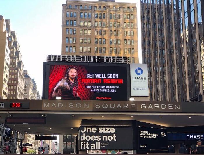 而在WWE专门培训新人的训练评估中心的墙壁上,罗曼的大幅照片上也被新人选手们放上了一个橙丝带,上面写着:“谢谢你罗曼”、“战斗、胜利!”