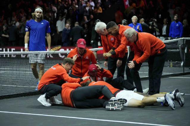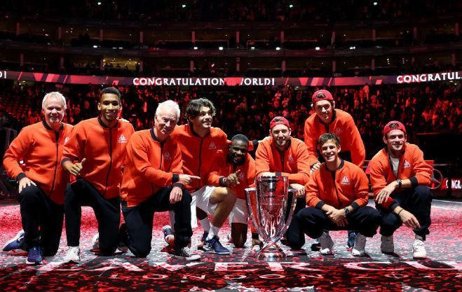 北京时间今天凌晨时分,随着美国新星蒂亚弗抢十逆转希腊名将西西帕斯,世界队率先拿到13分,以13-8提前锁定胜局,击败由“四巨头”领衔的欧洲队,夺得拉沃尔杯网球团体赛冠军。这是世界队在已经举办的五届拉沃尔杯中首次获胜,终结了欧洲队不败的历史。