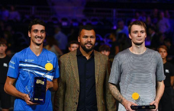 我们再来关注其它赛场。北京时间昨晚,ATP250梅兹站结束了男单争冠战。意大利人索内戈发挥出色,以7-6(3) 6-2击败哈萨克斯坦人布勃利克,职业生涯首次称雄硬地赛。而赛事的颁奖嘉宾是已经退役的法国名将特松加。