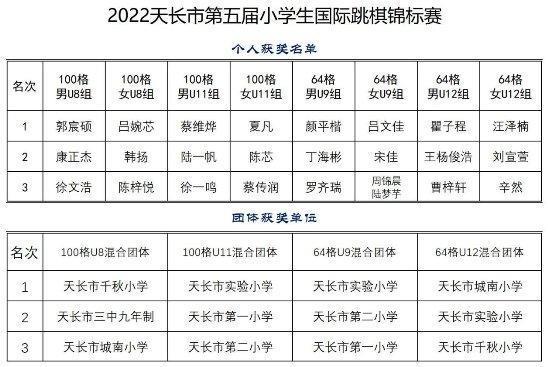 天长市第五届小学生国际跳棋锦标赛顺利落幕