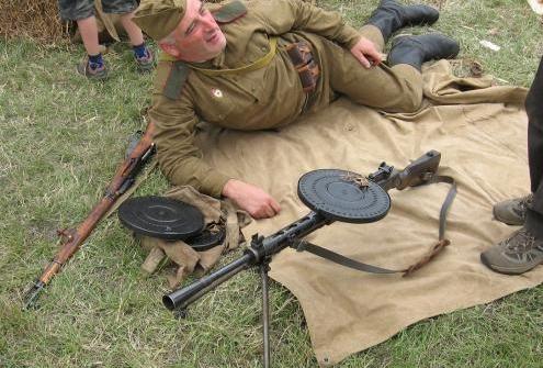 二战外观最显眼的轻机枪当然是DP轻机枪,也称为捷格加廖夫轻机枪,主要是它采用圆盘式弹盘。正常人眼中机枪顶上带这么大个圆盘肯定携带很不方便,也费劲。但这正是DP轻枪机的优势之一,47发容弹量比同期20发标准的轻枪机火力持续性凶猛很多。