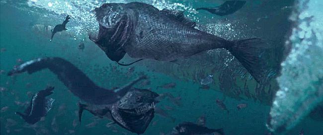 剧中的刀齿蝰鱼短短时间就把密密麻麻的虫子吃完了,尖牙利齿又将竹筏啃碎,对刀齿蝰鱼的描述是“它们见血就发疯”,再结合刀齿蝰鱼的形象,不难让人们脑子里蹦出来“食人鱼”这三个字。