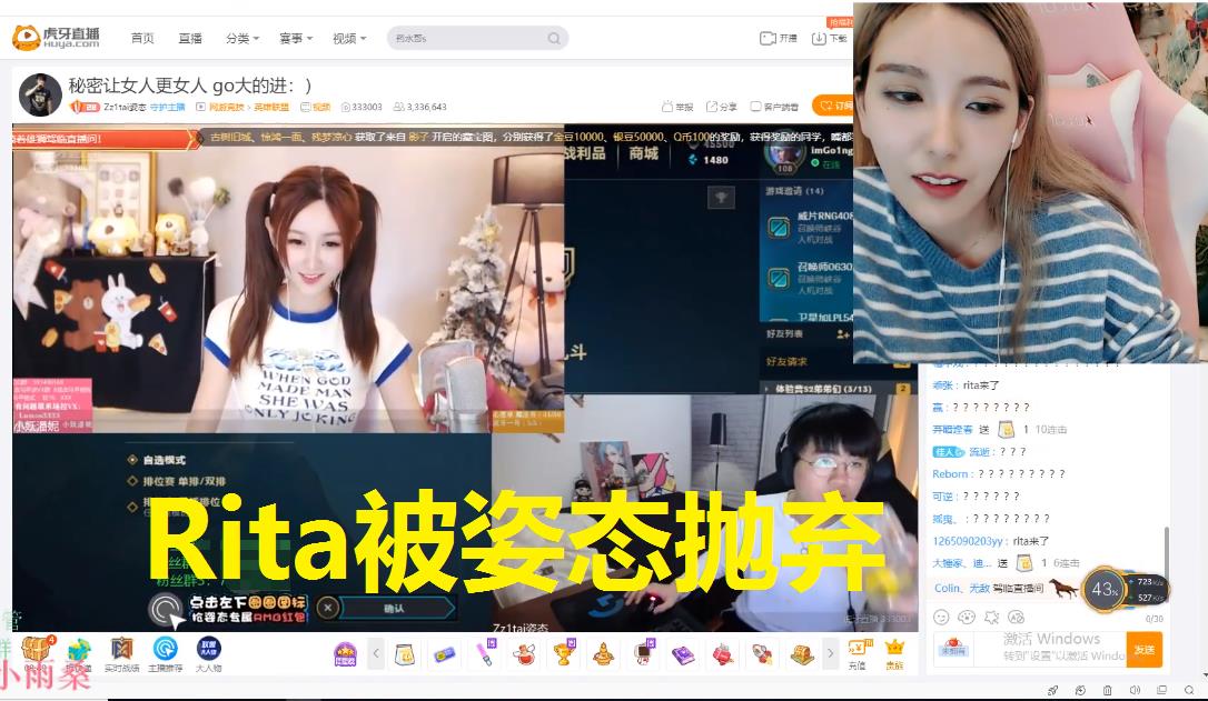 LPL美女小花旦解说Rita在虎牙开播的消息肯定很多观众都知道,Rita平时在解说台上还是很认真严肃的,令观众们万万没想到的是Rita在直播的时候风格大变,直播间公然开车,各种梗玩个不停,还经常自黑一下“电竞椅”和“战马”梗,和在解说台上完全不是一个人!这样的Rita刚刚开播就和姿态开始了双排记,两个人各种“艾希纳尔”、“艾希奶妈”让观众们直呼车速太快,也给了Rita一个称呼叫“虎牙第一污妹”。近日正当Rita想再次找姿态双排的时候,发现自己被姿态抛弃了!