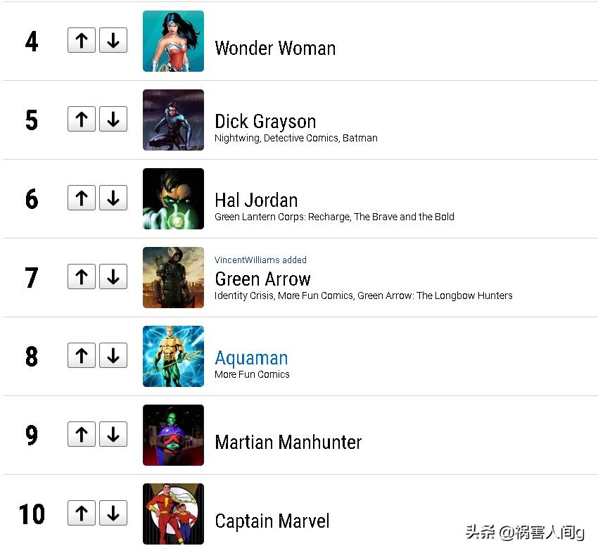 ranker网DC超级英雄人气排名,迪克.格雷森高居第五位