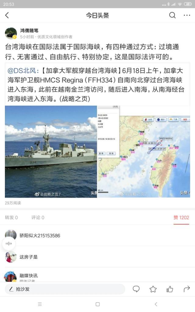 昨天,无意间评论了下关于加拿大军舰通过台湾海峡的帖子,因为看到有人说,揍他,台湾海峡是我们的内海,于是就匆忙根据自己的手头资料,说明了下台湾海峡在国际法上属国际海峡。