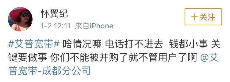 失去了金主的艾普互联,开始“放纵自我”,在明知自己没有能力继续经营的情况下,还在不断的打广告做宣传,用极低的价格吸引众多不知情的消费者和承包商纷纷入坑。这样的做法无异于饮鸩止渴,很快,用户发现自己订购了几年的宽带居然不能用,网上爆发了大规模的声讨行动,终于,扛不住压力的艾普宽带彻底垮了,高管跑路,员工迷茫,只留下一堆维权的消费者和要债的承包商。2018年2月,艾普宣布不再负责通信服务,并将用户转移至中国电信网下。