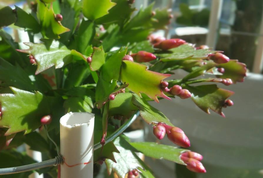 蟹爪兰是典型的短日照植物。每天太阳和灯光照射超过10个小时,就会影响蟹爪兰的花芽分化,不能孕育花蕾也就不开花了。此时要给蟹爪兰进行遮光处理,保证正常的日照时长即可。另外,蟹爪兰要沐浴在柔和的散射光照下,中午光照太强会灼伤植株,影响开花。